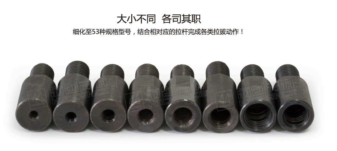 細化至53種規格型號,結合相對應的拉桿完成各類拉拔動作!